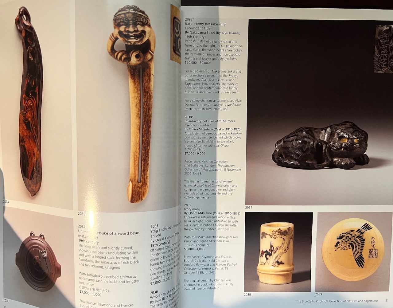洋書(オークションカタログ 落札価格表あり)『The Bluette H. Kirchhoff Collection of Netsuke and Sagemono(ブルエット・H・カーチョフ・コレクションの根付と提物)』