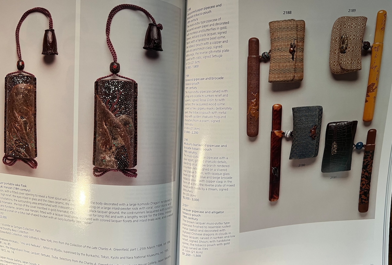 藻一派の作品多数を含む多様な根付、印籠、たばこ入れ、煙管筒など、良質な作品が掲載されていて見応えがあります。