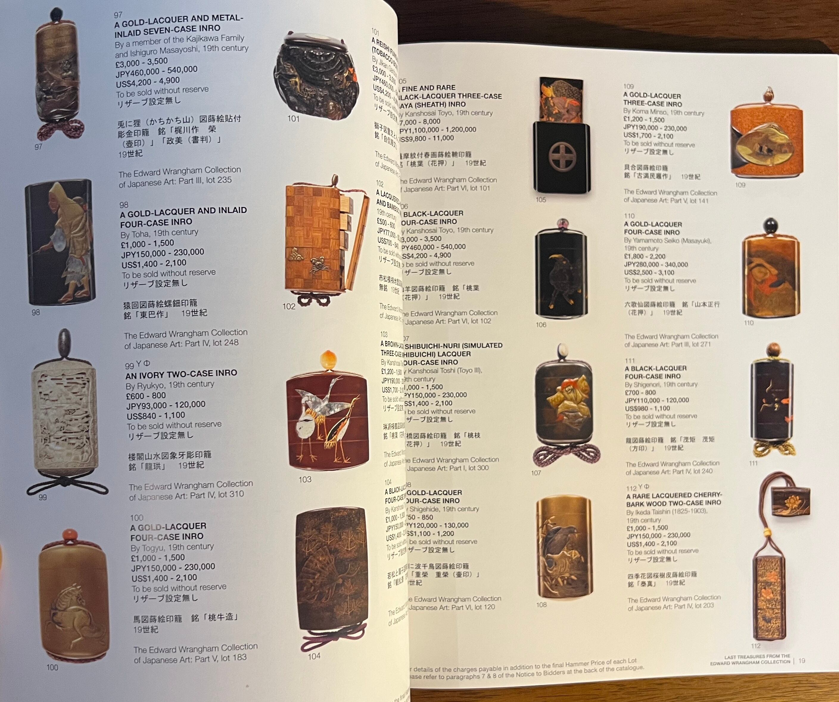 『The Index of Inro Artists(印籠大事典)』の著者として知られるエドワード・ランガム氏の日本美術コレクションの競売図録。