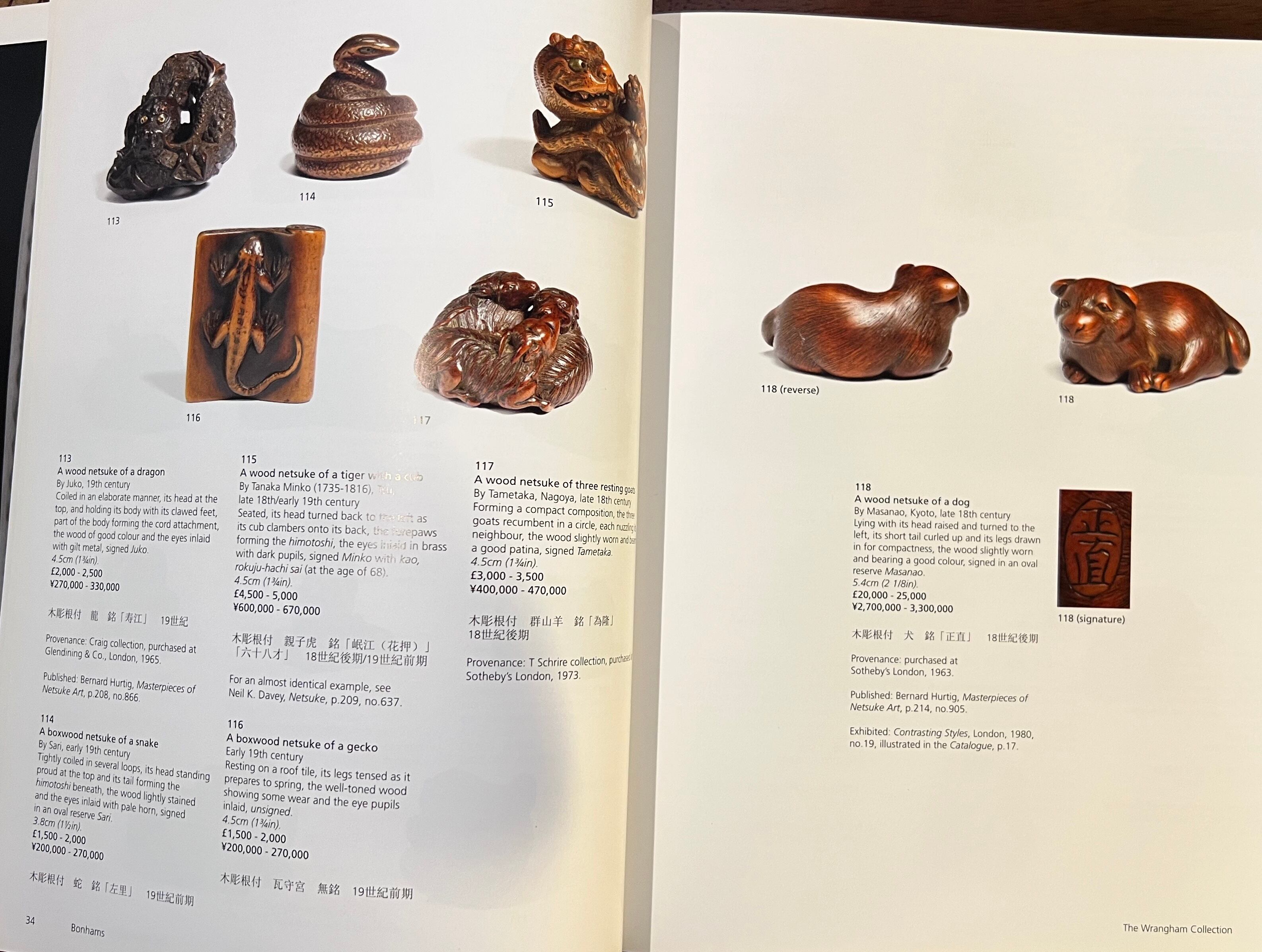 このランガム・コレクション(Wrangham Collection)の競売は、シングルオーナーセール(ひとつのコレクションの出品から成るオークション)として注目を集め、雑誌『目の眼』の記事でも言及されています(下記リンク参照)。