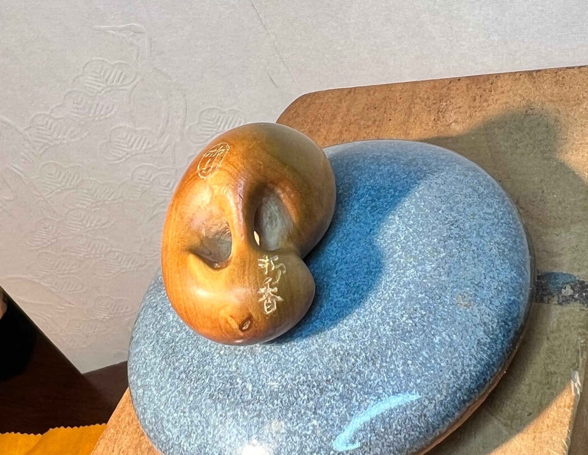 というわけで、わたしども父娘の初のコラボ作品。しかも、彫刻歴80年近い父にとって(分業以外での)初の合作、私にとって雅号・共香(ともか)改め柳香(りゅうこう)での初作品という、初めて尽くしの珍品です!