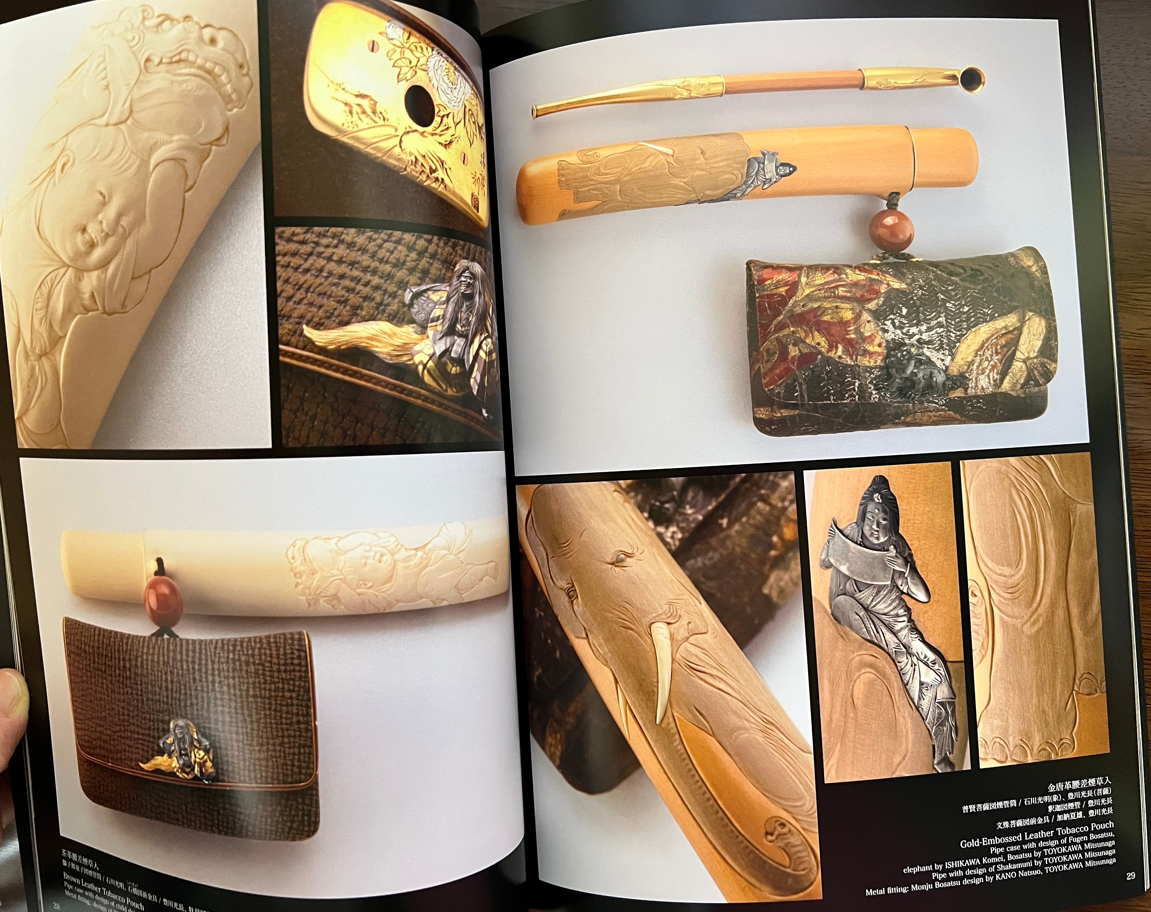 高村光雲と石川光明による牙彫、木彫、煙管筒など全56点の優品が収録されています。