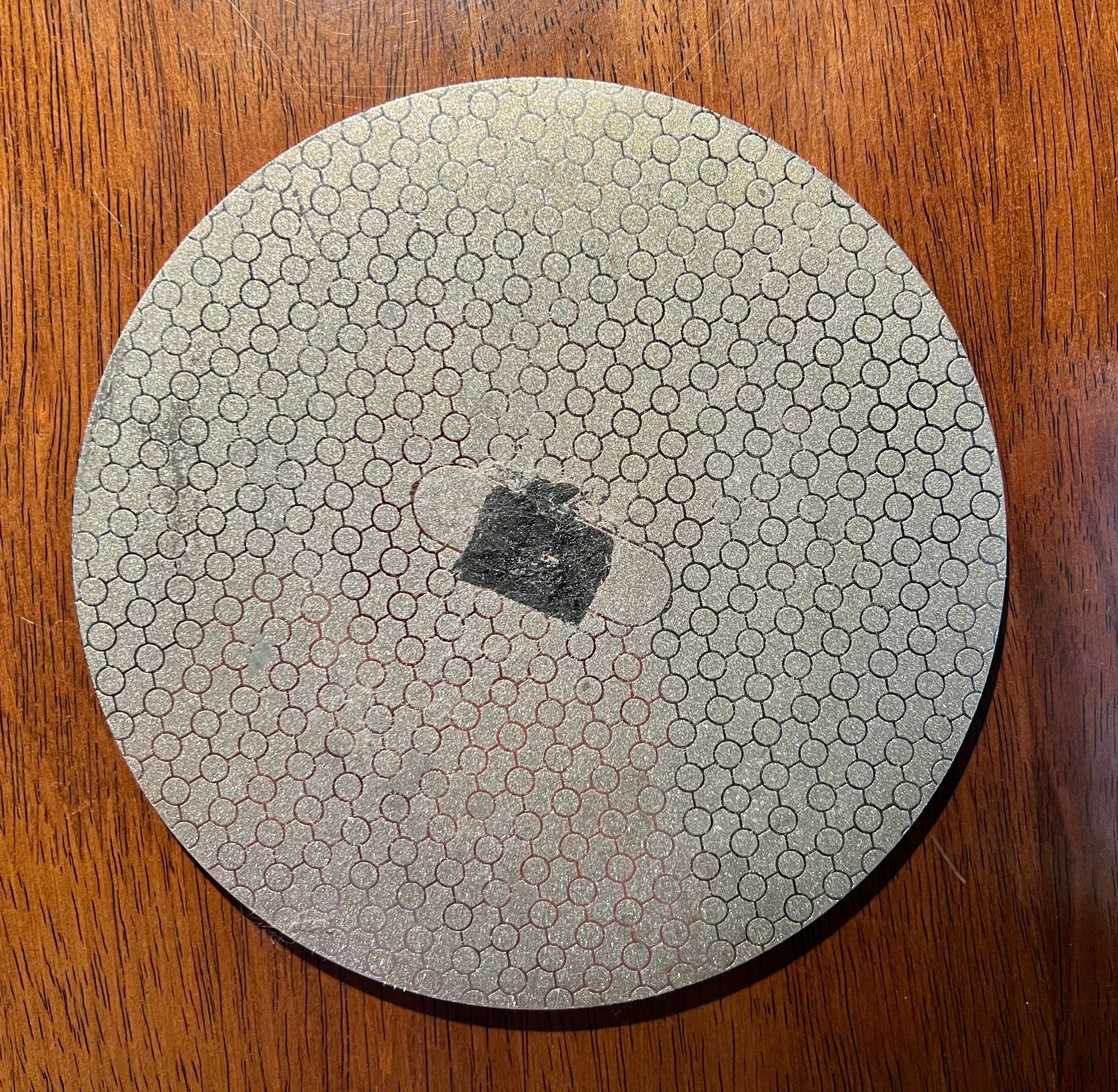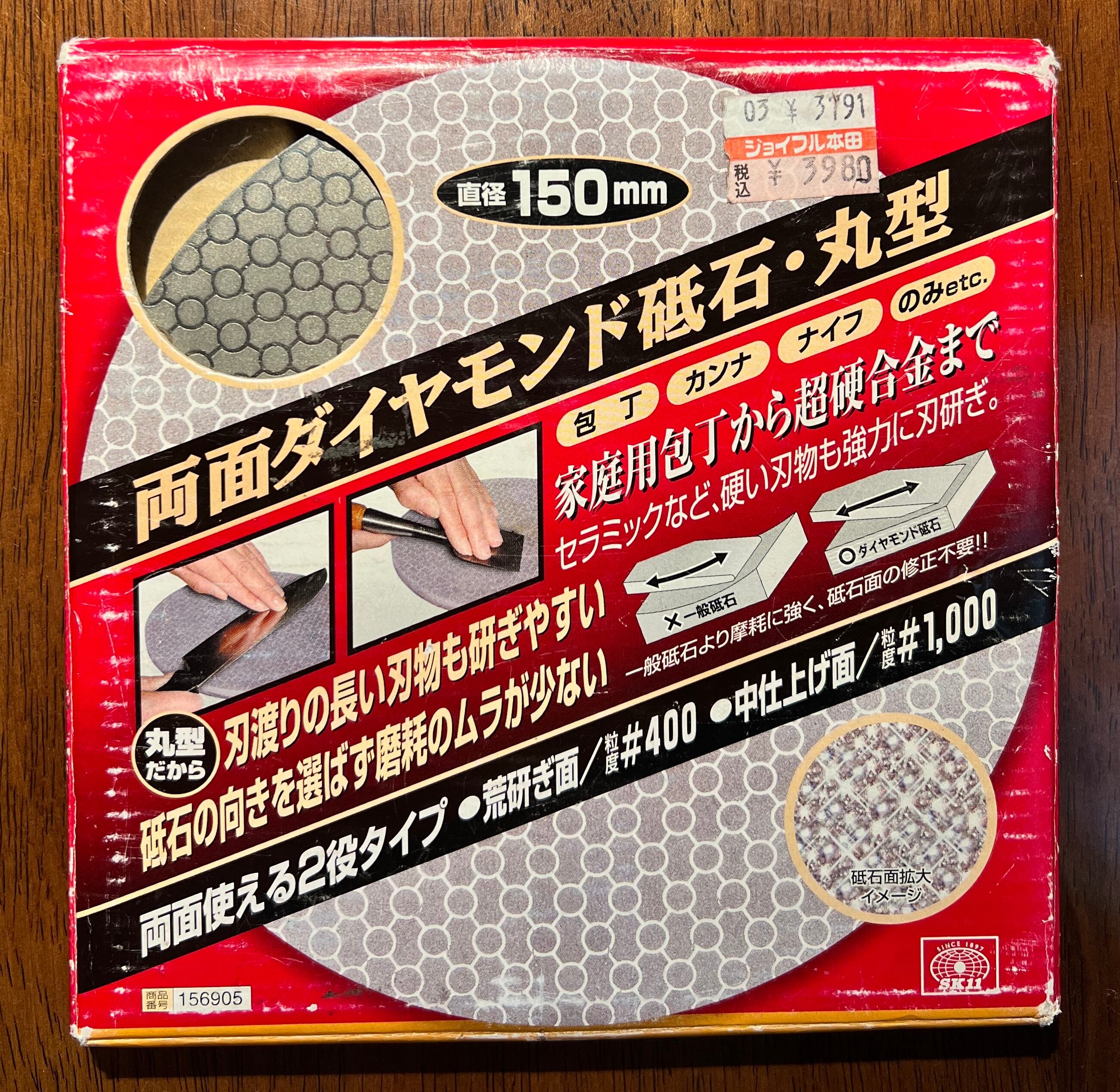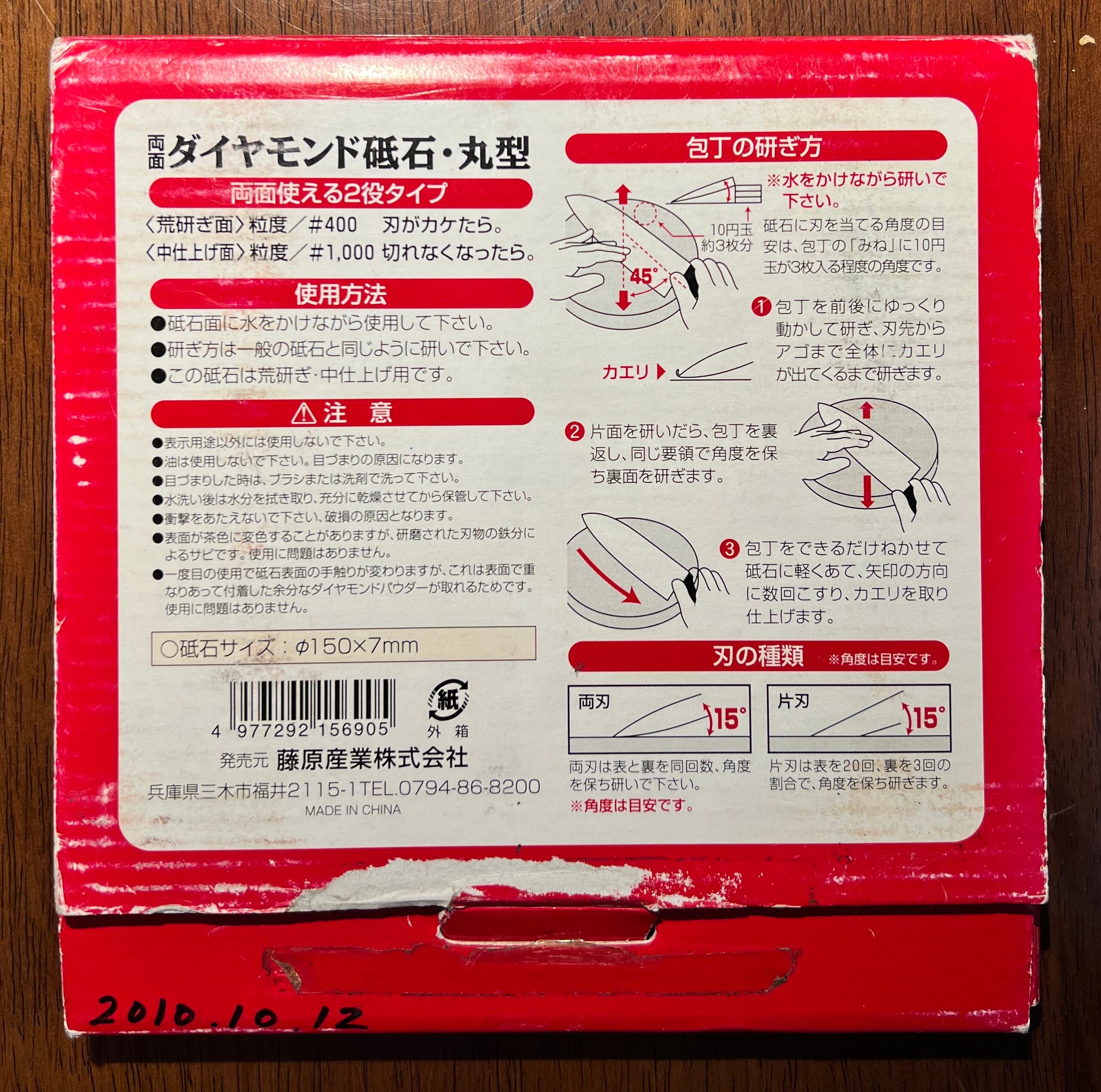 なお、荒研ぎ面の中央に粘着テープか何かが付いています。温めると取れるかもしれませんが、取れなくてもテープの部分を避けて使えば問題ないそうです。